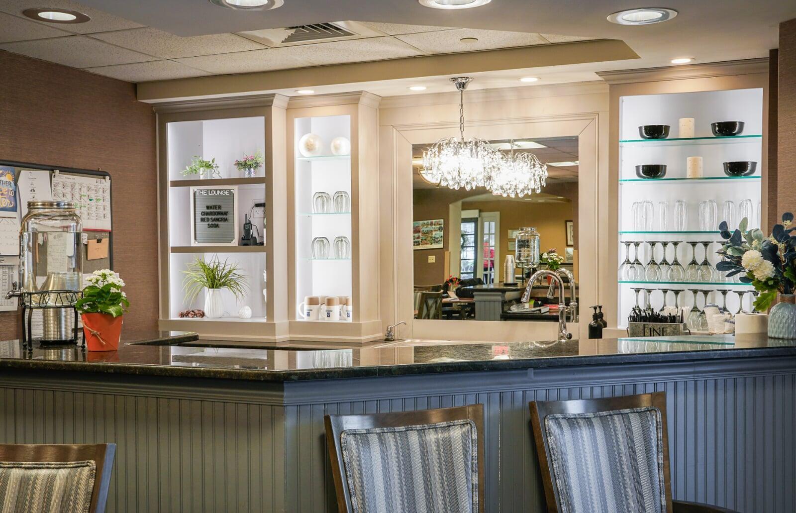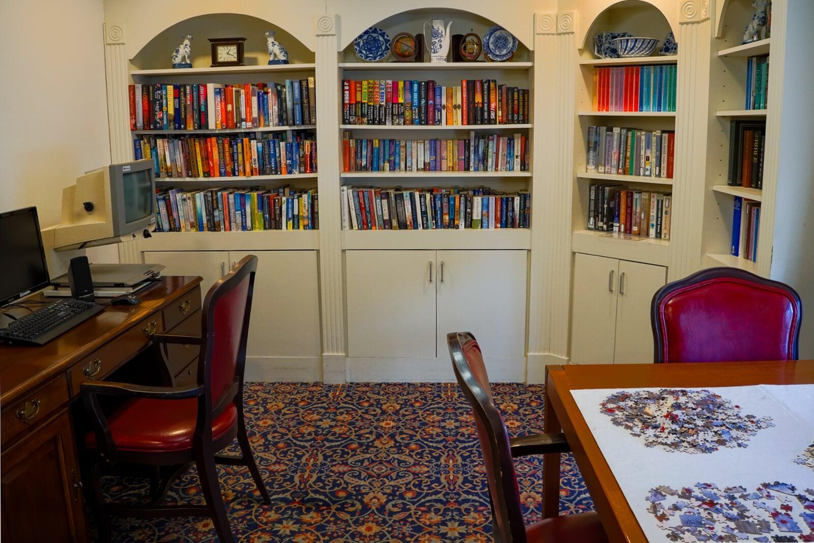 Our residents can interact with others in the main foyer or have a quiet moment to themselves in the library. When weather permits, we offer outside tables and umbrellas where you can sit and enjoy the warm sun with friends and family.