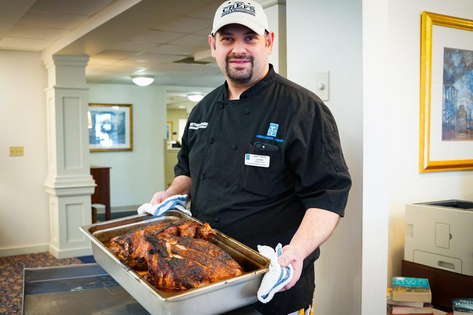 Executive Chef Matthew creates a fresh, impressive menu each month with alternative options and is always happy to accommodate dietary needs.