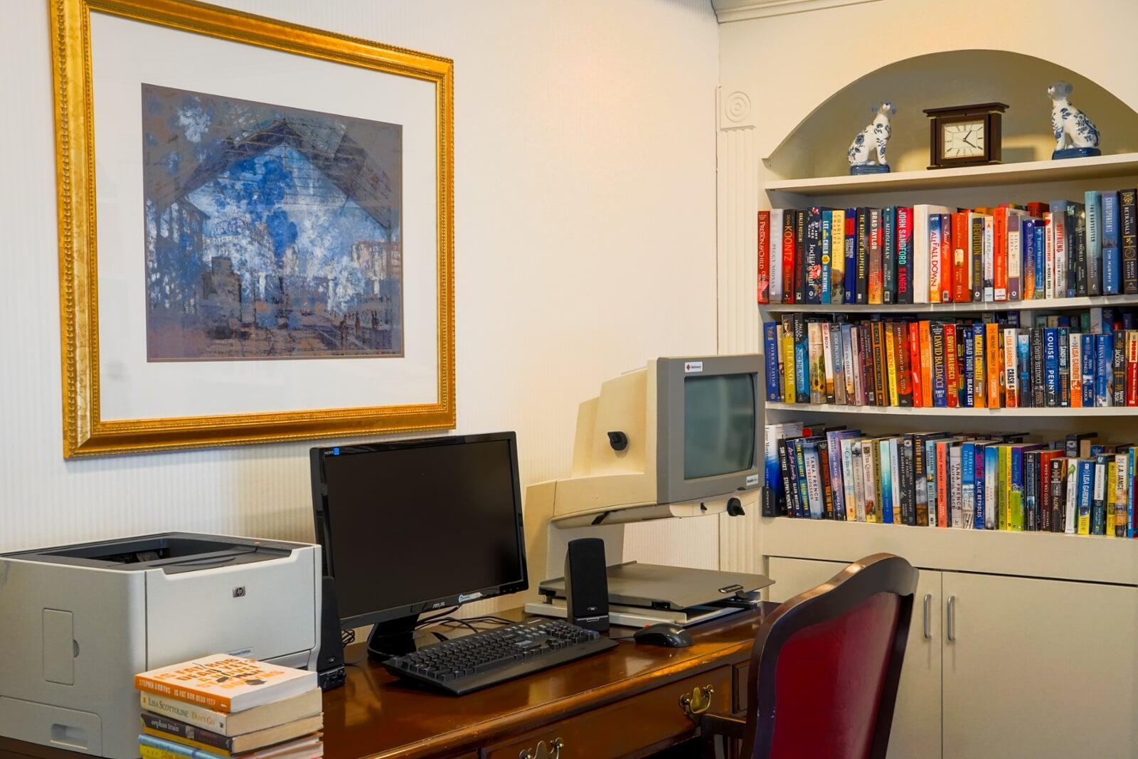 If you’re looking for a new read, you can find it right next to the living room in the library.