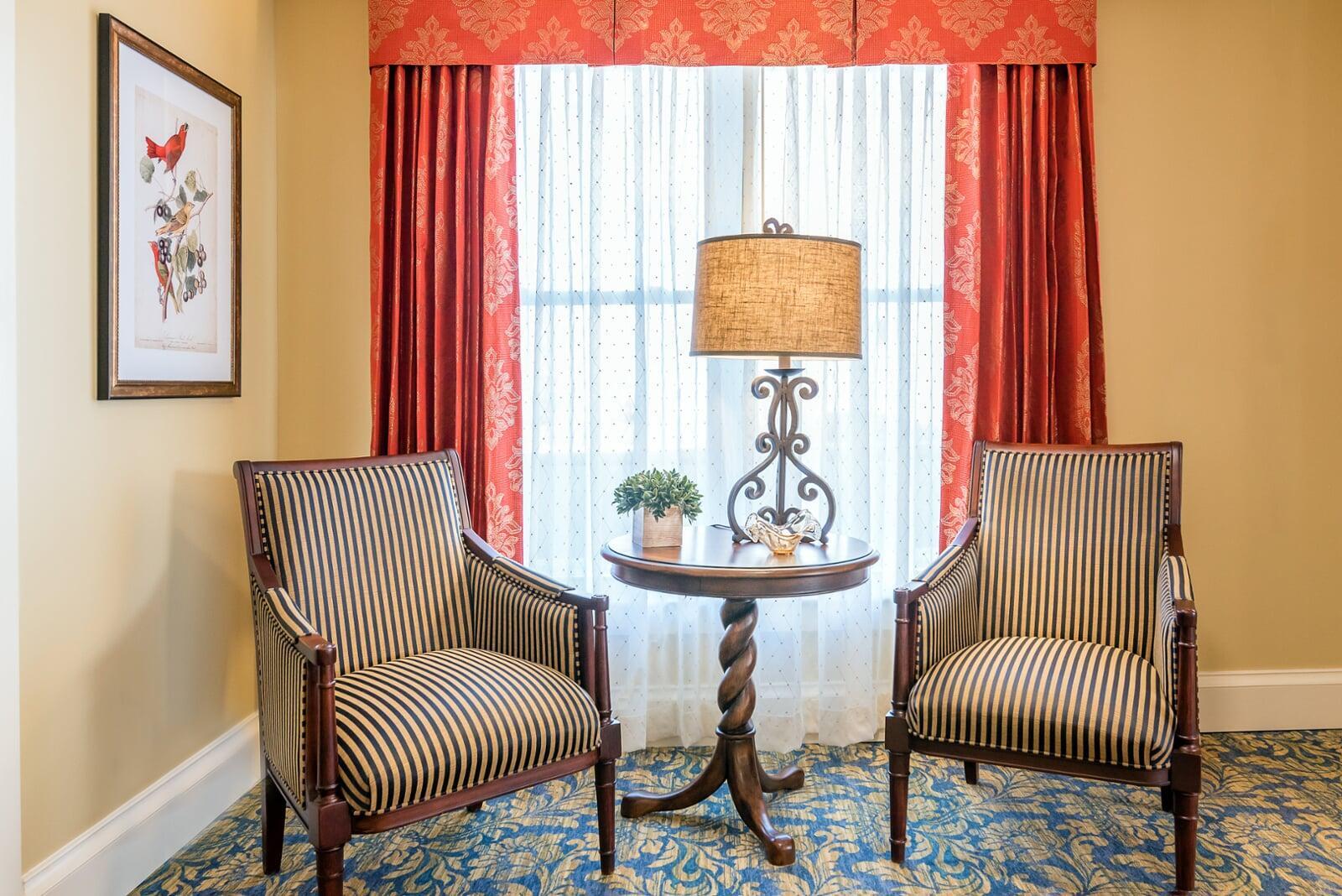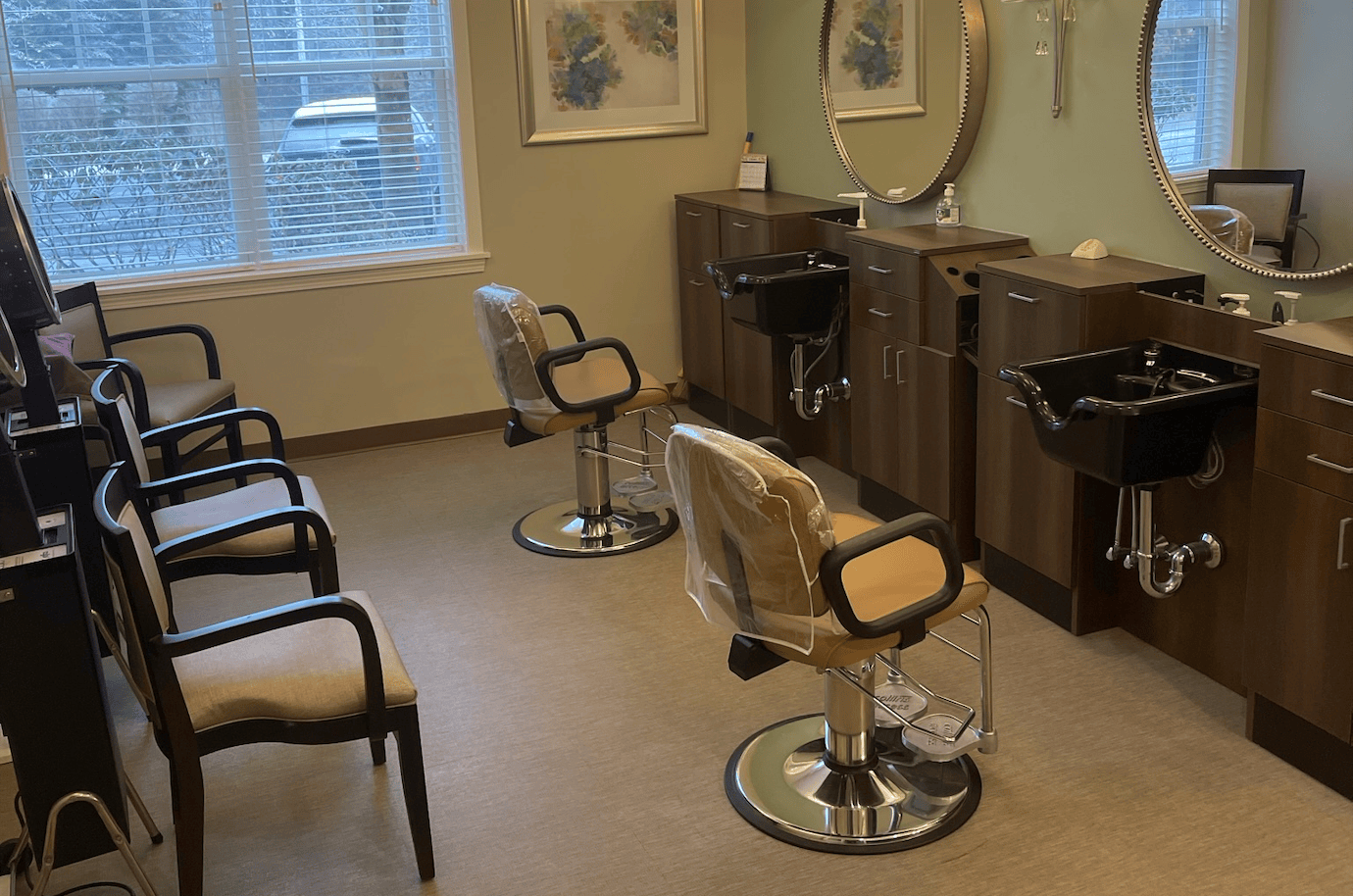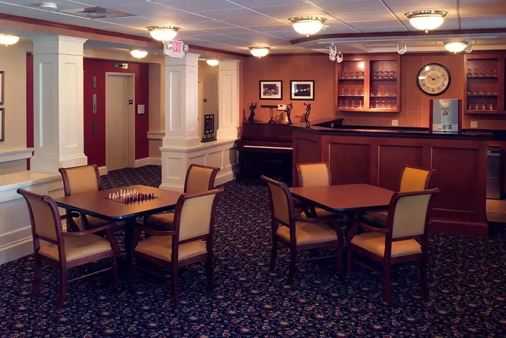 Our residents can interact with others in the main foyer or have a quiet moment to themselves in the library. When weather permits, we offer outside tables and umbrellas where you can sit and enjoy the warm sun with friends and family.