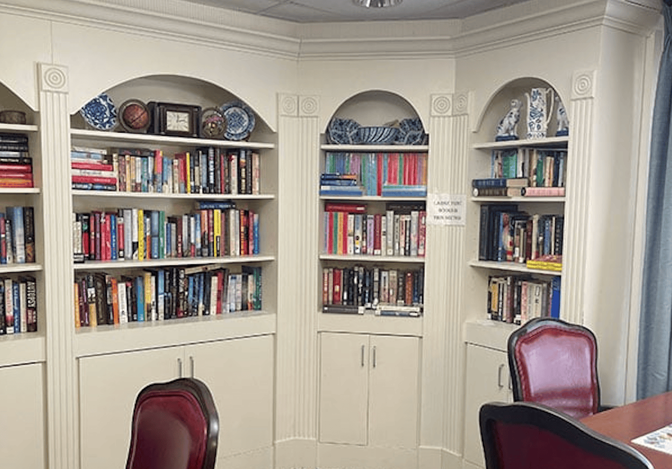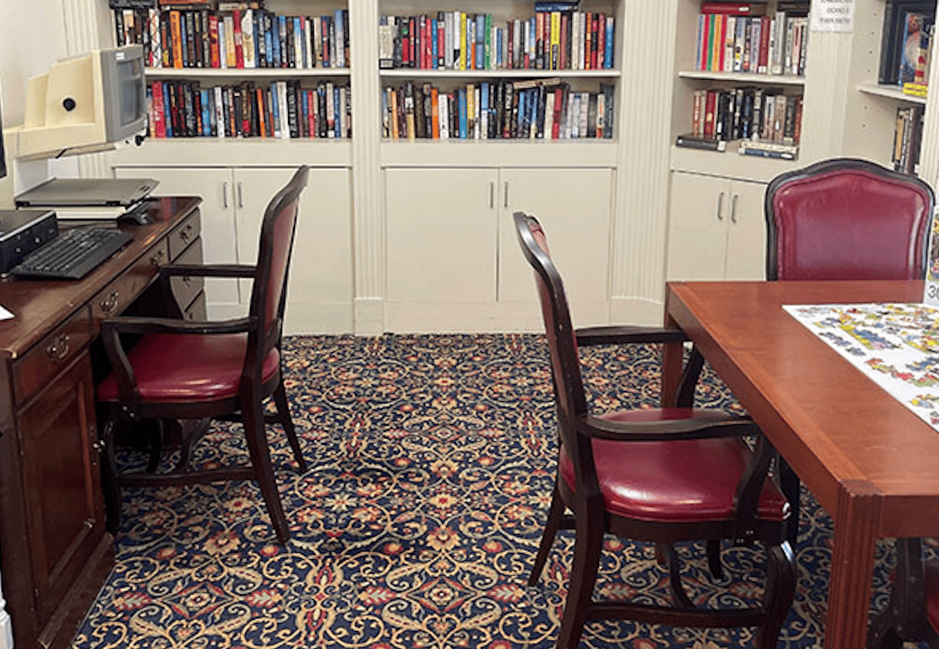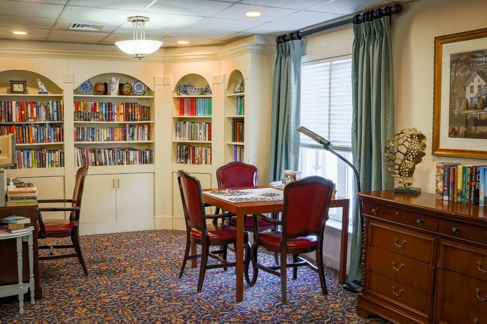 Our residents can interact with others in the main foyer or have a quiet moment to themselves in the library. When weather permits, we offer outside tables and umbrellas where you can sit and enjoy the warm sun with friends and family.