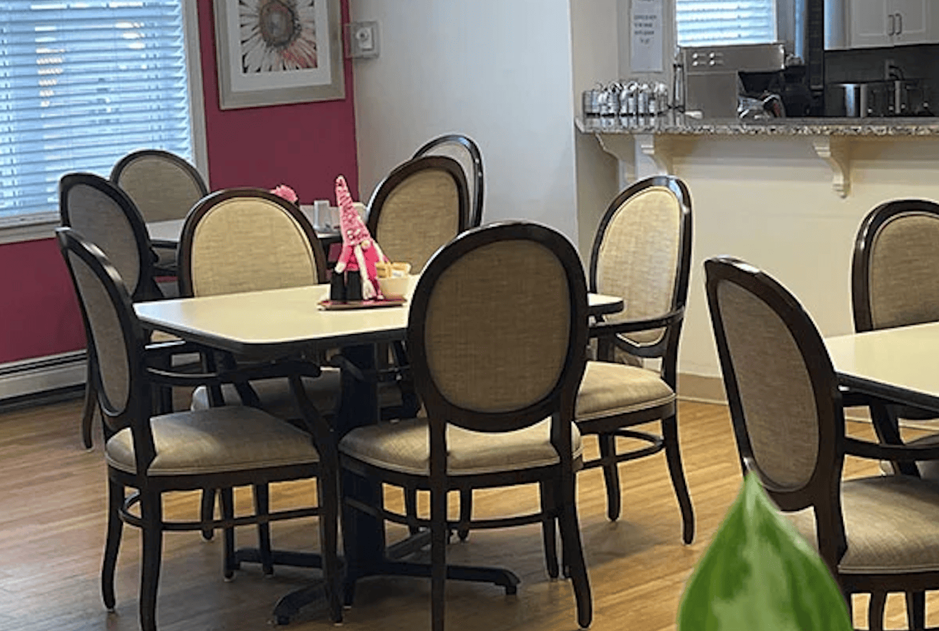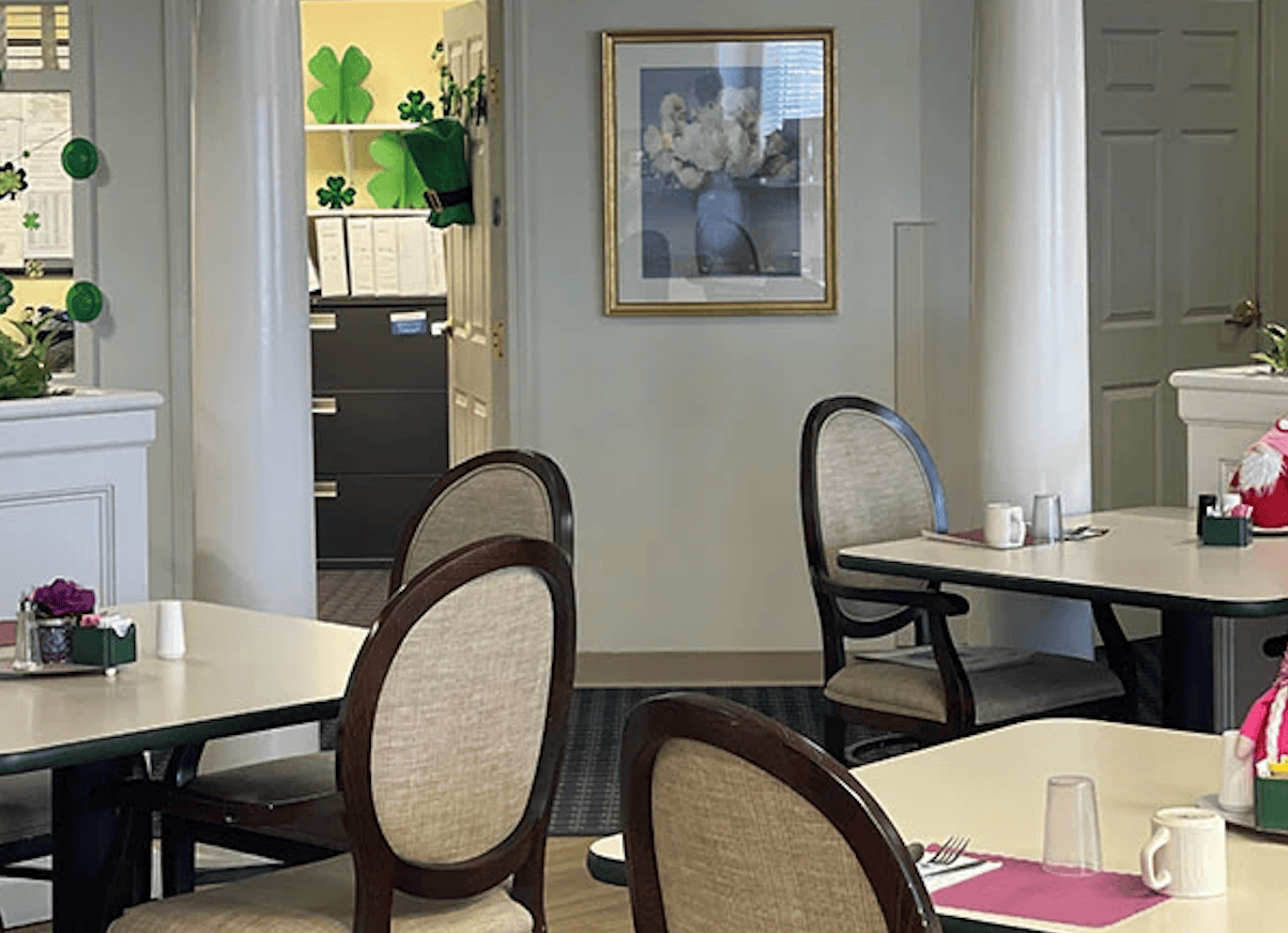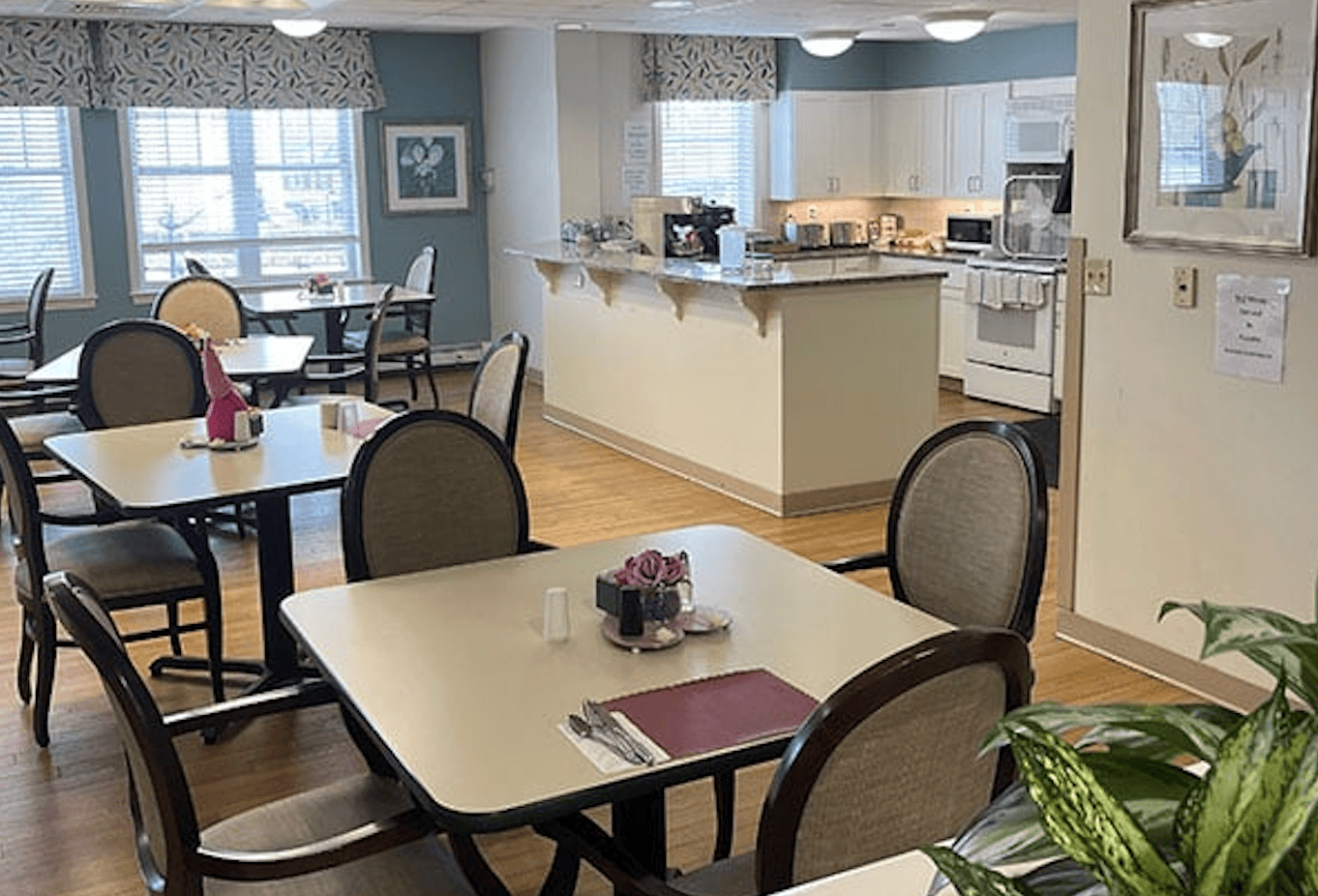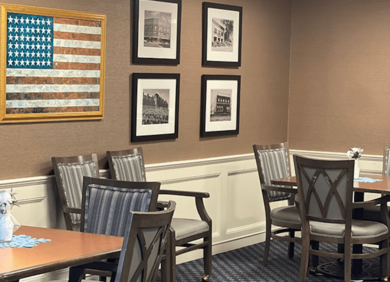Our residents can interact with others in the main foyer or have a quiet moment to themselves in the library. When weather permits, we offer outside tables and umbrellas where you can sit and enjoy the warm sun with friends and family.