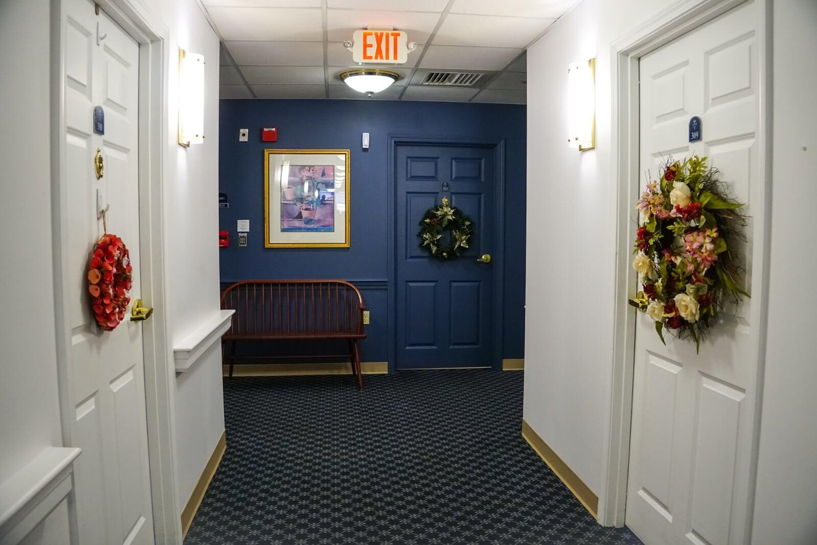 Residents add their own personal touch by decorating their doors, often celebrating the seasons and upcoming holidays.