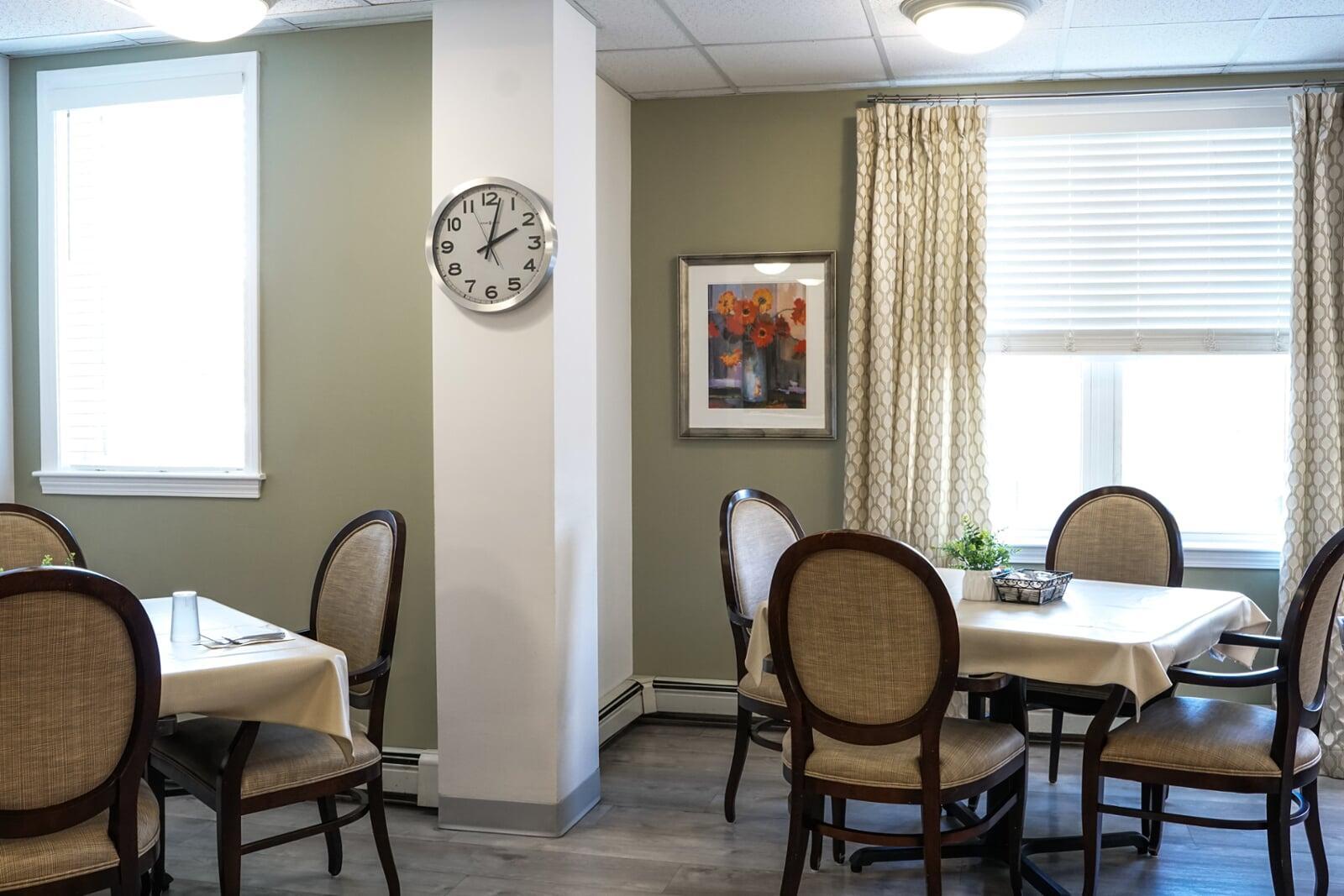 Each floor features a dining area where you can enjoy chef-prepared meals every day.