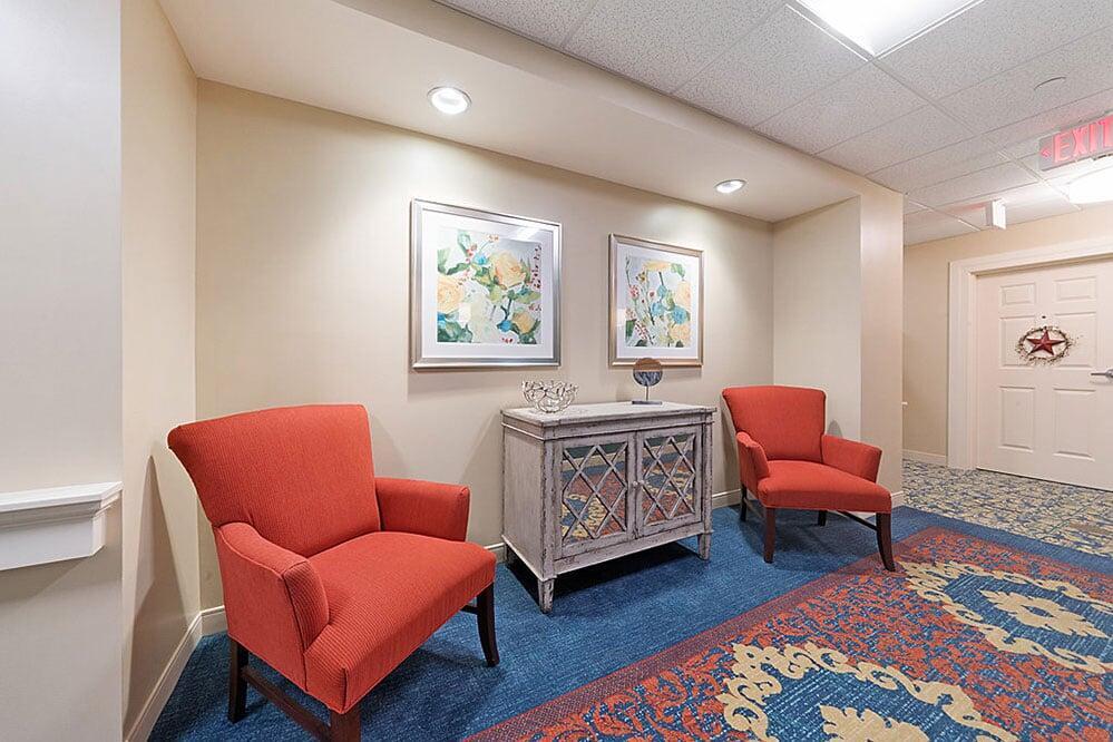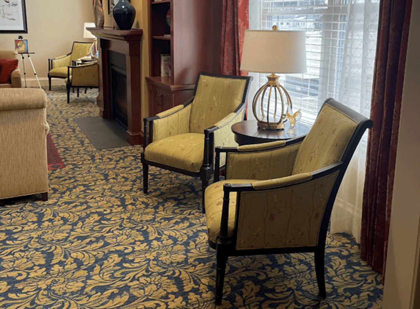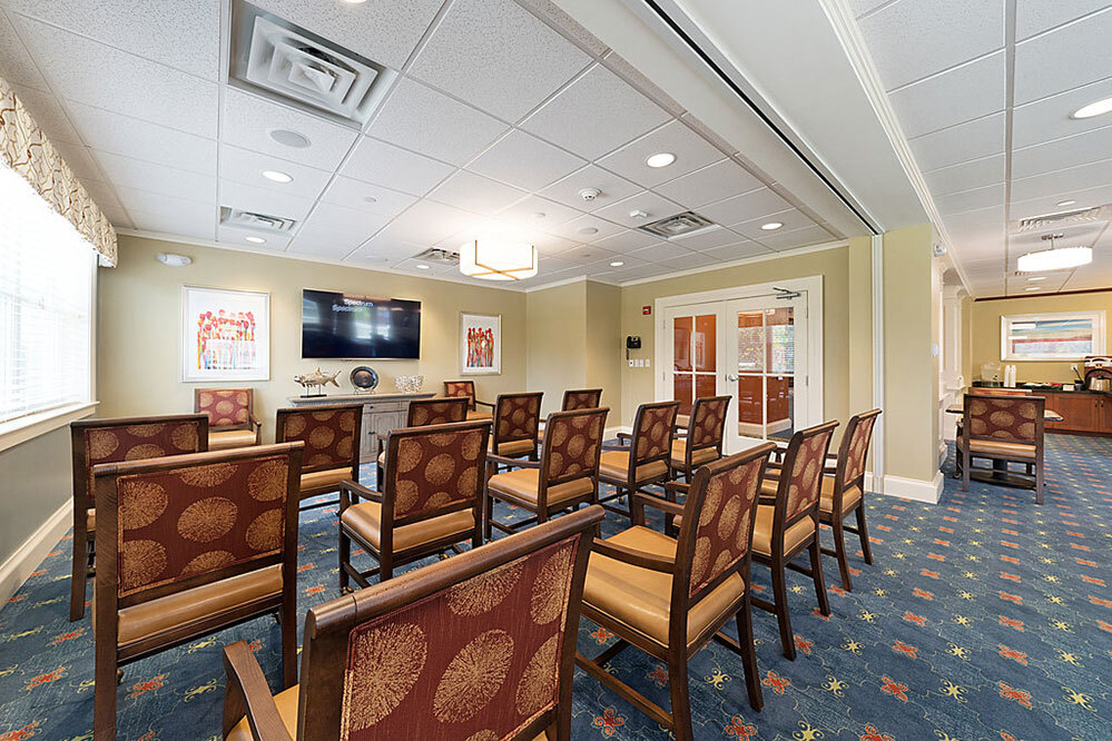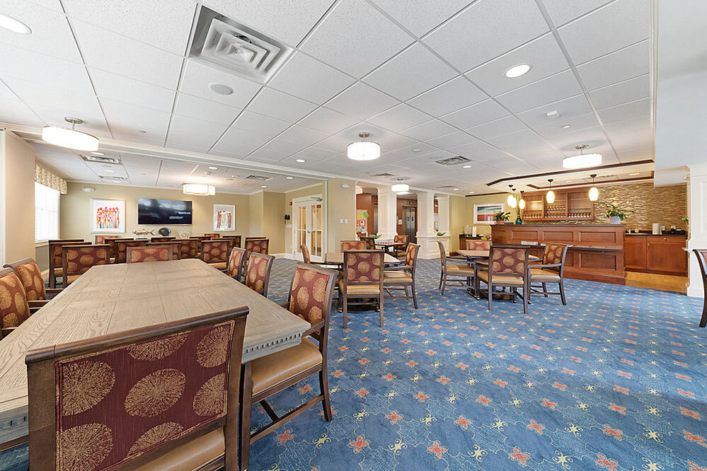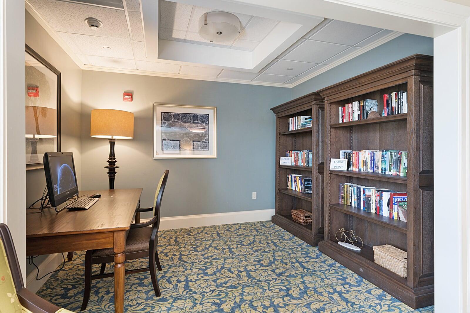 Our residents can interact with others in the main foyer or have a quiet moment to themselves in the library. When weather permits, we offer outside tables and umbrellas where you can sit and enjoy the warm sun with friends and family.