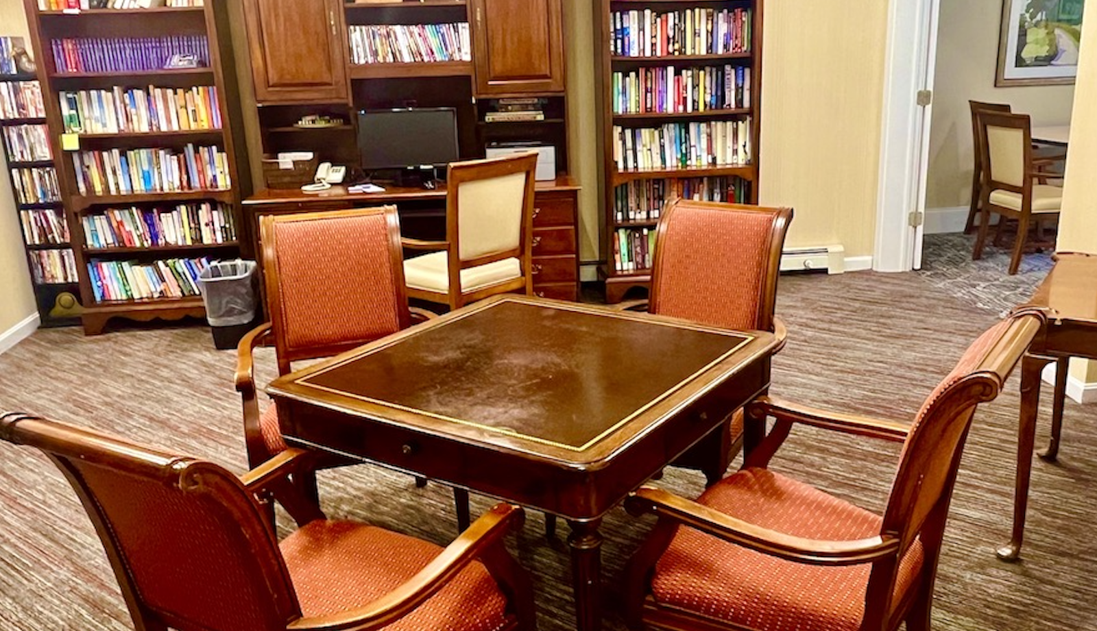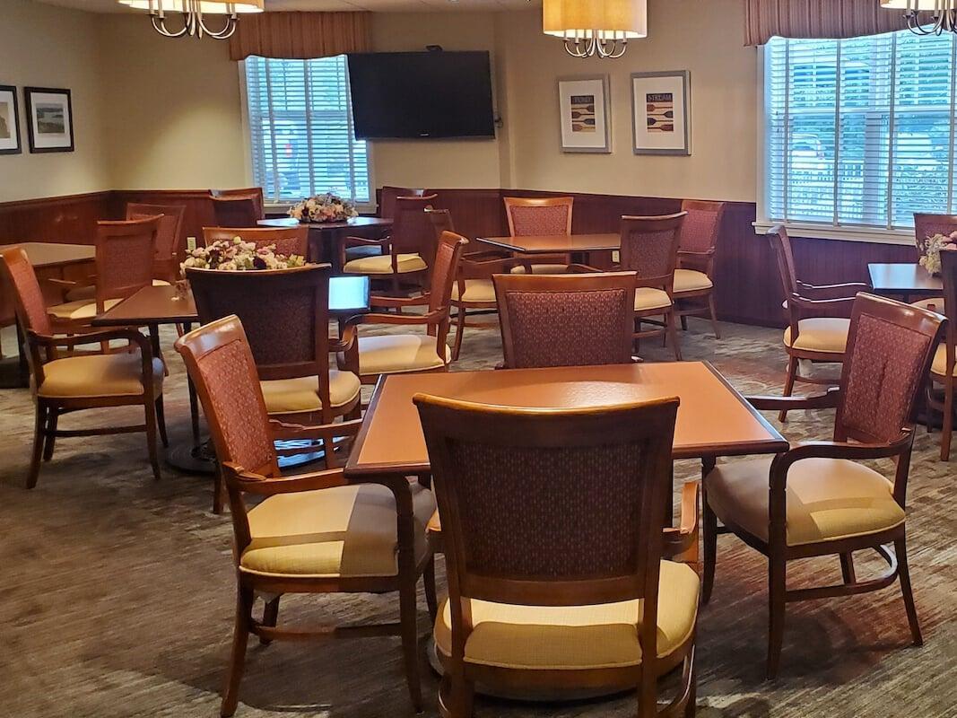 Our residents can interact with others in the main foyer or have a quiet moment to themselves in the library. When weather permits, we offer outside tables and umbrellas where you can sit and enjoy the warm sun with friends and family.